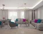 تصميم المشروع وسط مسطحات خضراء واطلالة بحرية جميلة أبنيته منخفضة الارتفاع وذات مساحات مختلفة مما يؤمن أكثر من نمط للشقق وبذلك هناك فرصة للعائلات الكبيرة والصغيرة للاستفادة من المشروع .